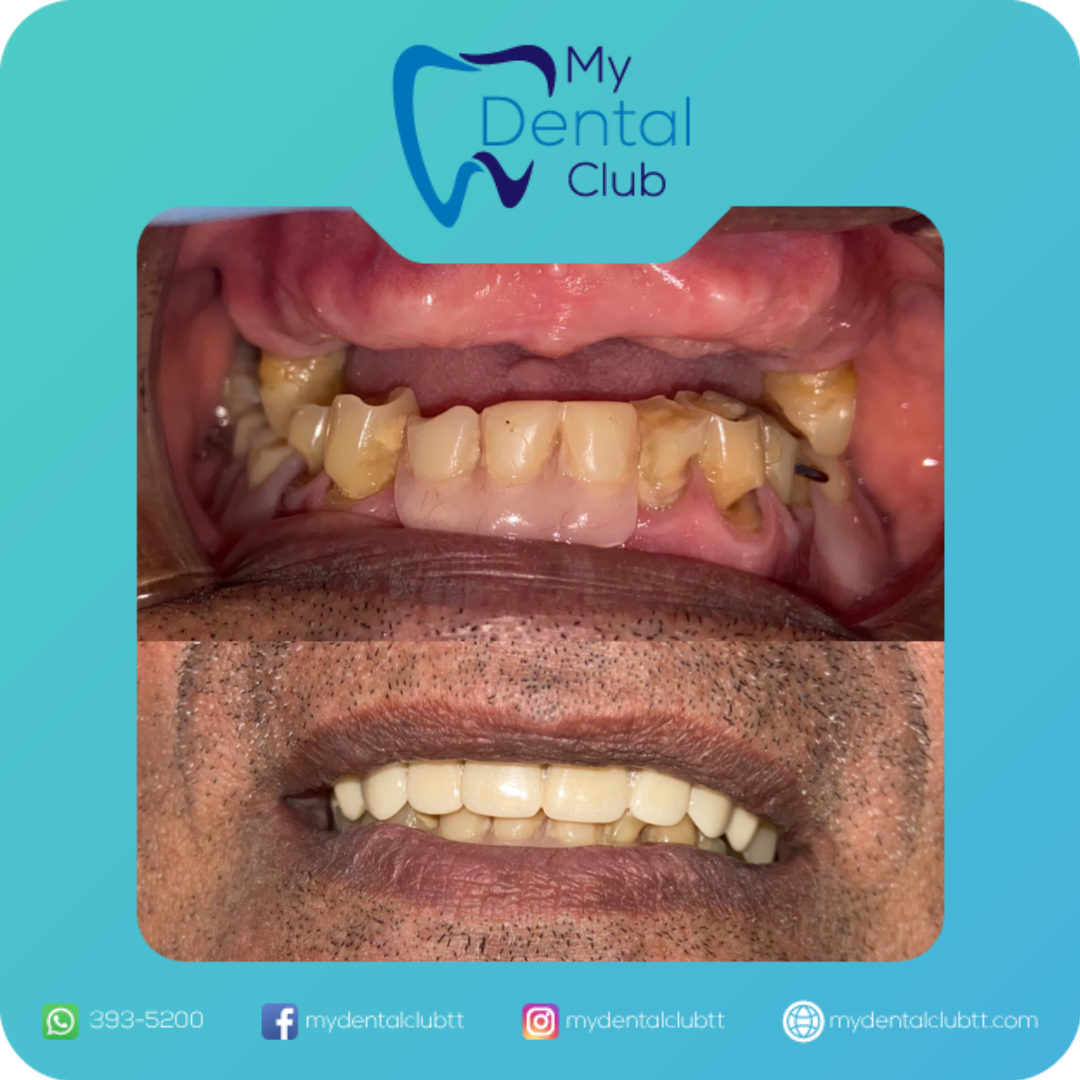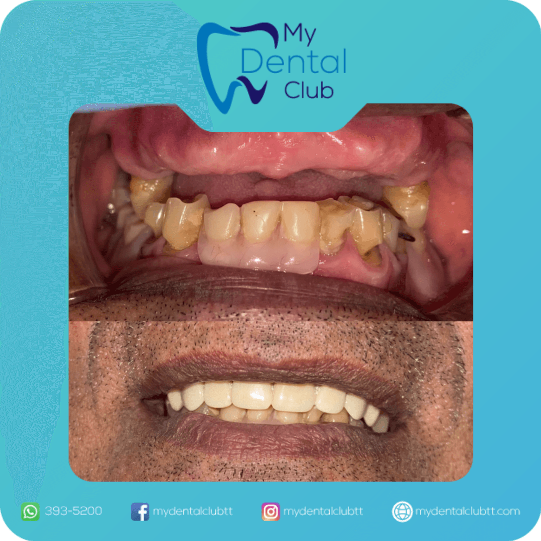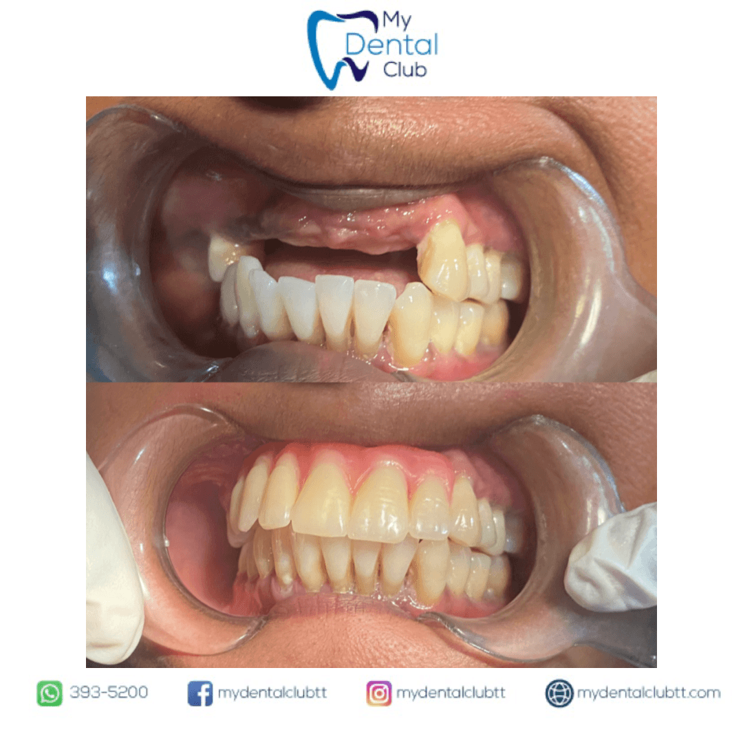 This before-and-after case showcases a remarkable smile transformation completed by My Dental Club TT, a trusted Trinidad dentist providing high-quality and affordable dental care.