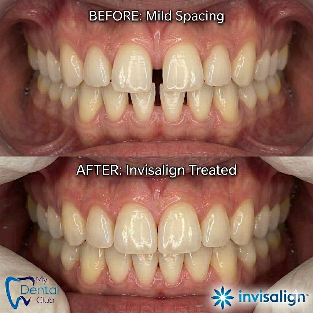 This case highlights a successful Invisalign treatment for mild spacing between the front teeth, completed at My Dental Club TT.